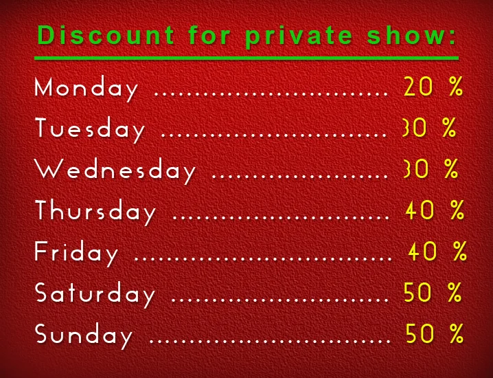 Once a day for 30 or 45 minutes I include a discount on hot private shows. Hurry up to order a private show at a significant discount!